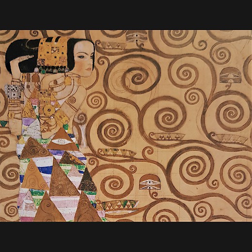Eine Idee war, Gustav Klimts „Lebensbaum“ auf der Innenseite des Flügels darzustellen. Wegen Klimts herausragenden Bedeutung für Wien. (Bilder 6 und 7)